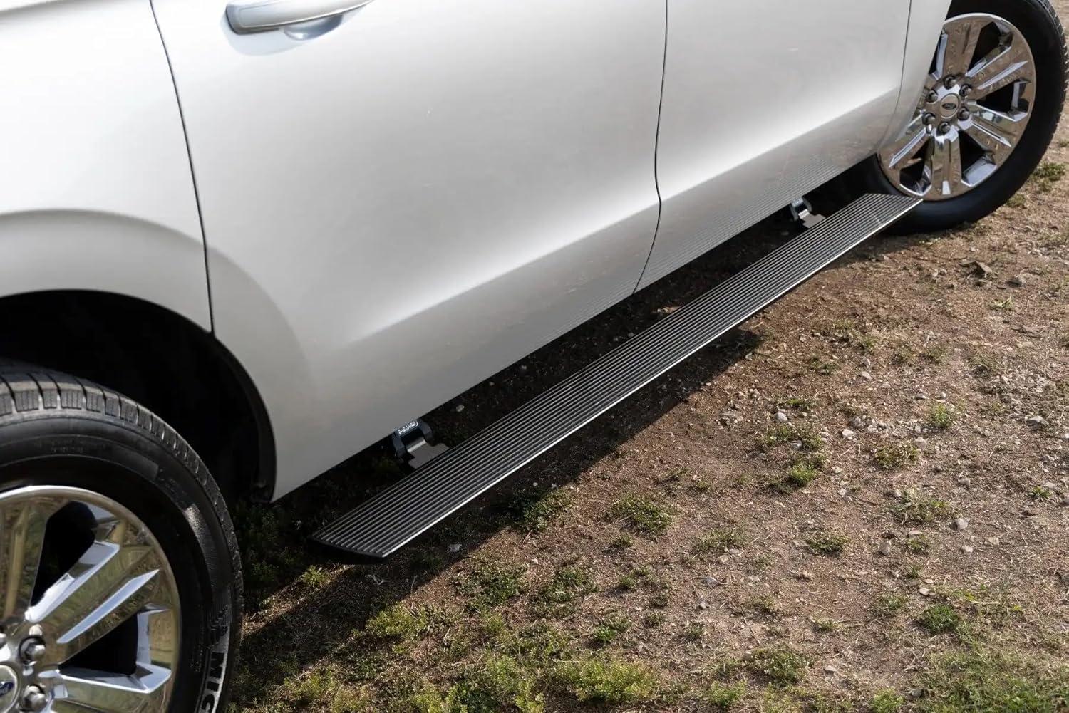Step up in style. Sidesteps have come a long way, and now we've taken them to the next level with Rough Country's Power Running Boards! These retractable E-Boards tuck tight for a clean look when not in use and automatically extend when the door is opened. With an anti-slip surface that provides a secure stepping area, getting in and out of your ride has never been easier. Our Power Running Boards also include LED lights that provide illumination when deployed and shut off when steps are closed, providing a sleek, aerodynamic look.