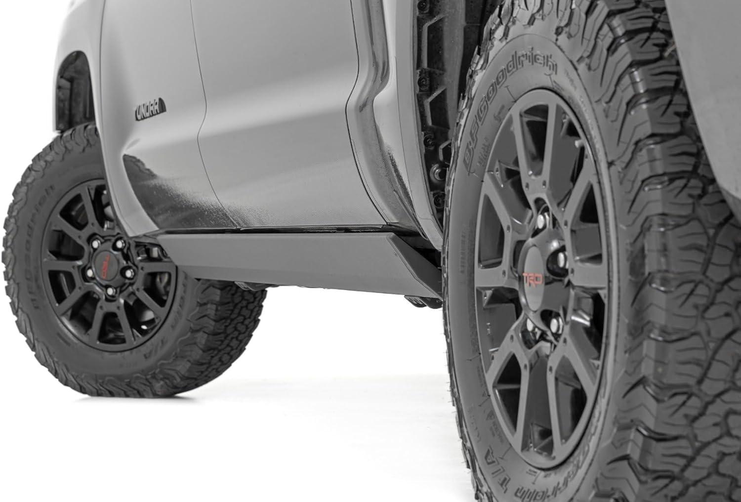 EASY NO-DRILL INSTALLATION: Designed for a hassle-free setup, Rough Country running boards & steps installs quickly without the need for drilling. It tucks neatly under the rocker panel, offering a clean, streamlined appearance that enhances your vehicle’s overall look.