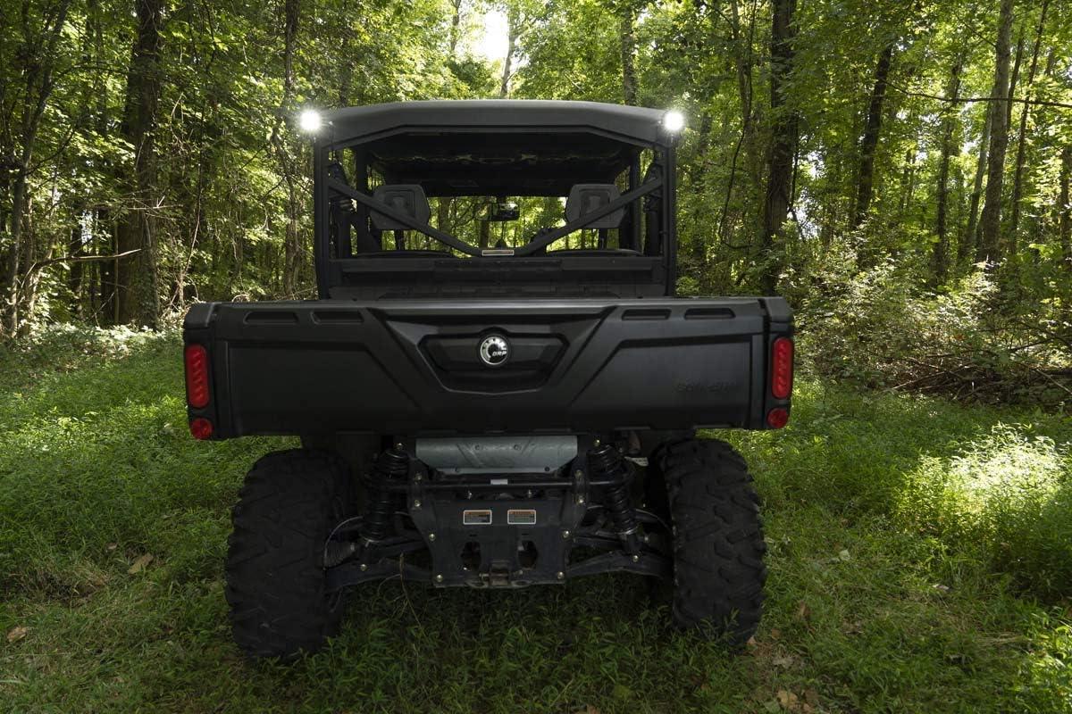 COMMAND THE DARK with Rough Country’s Rear-Facing Cube LED Kit for Can-Am Defender models. This handy solution includes everything you need to upgrade your Can-am with a set of 3″ OSRAM LED light cubes at the back of the cab for outstanding illumination. Whether you’re off the beaten path at sunset or gathering all your gear before dawn, you’ll be glad to have access to additional lighting power to tackle the task at hand. With 13,500 lumens and 140 watts of high-intensity CREE LED output, you’re sure to have plenty of LED power. These all-weather lights feature a durable, IP67 Waterproof, die-cast aluminum housing and include a premium wiring harness with toggle switch and in-line fuse. Best of all, this easy-to-install kit features a 100% bolt-on installation procedure allowing you to upgrade your Defender quickly and easily! Don’t miss this opportunity to upgrade your UTV with one of the best Can-Am Defender Accessories available!