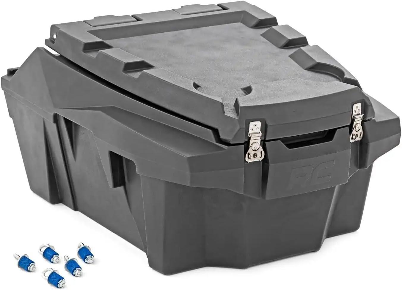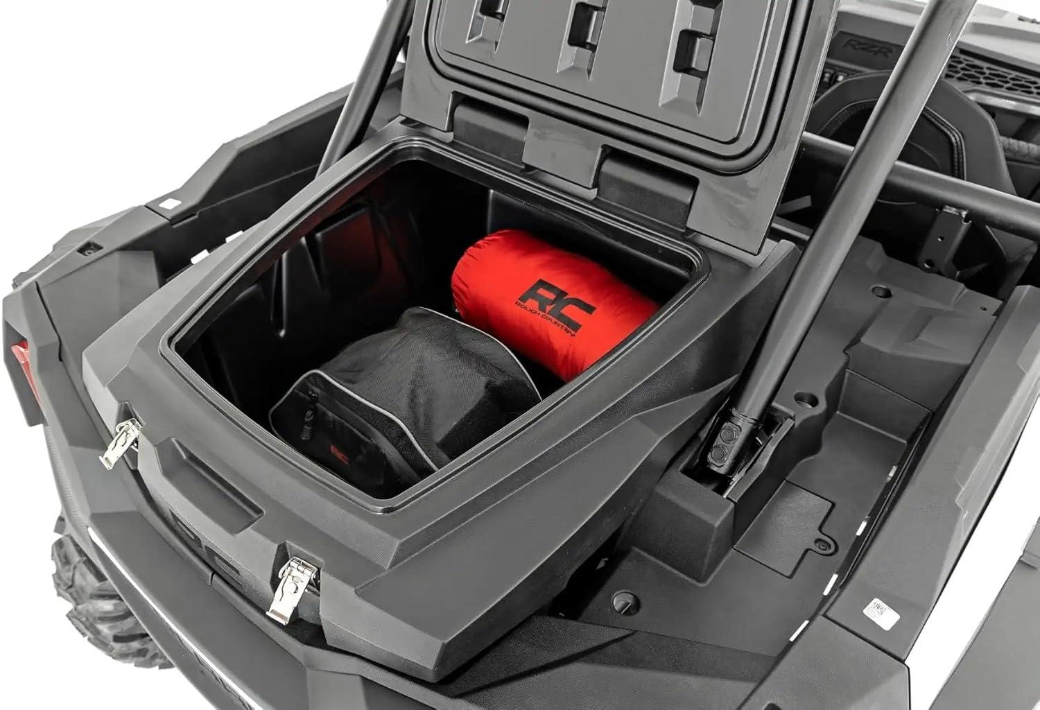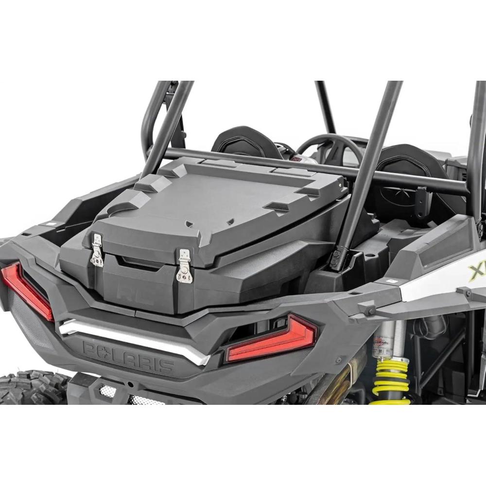 Safety and Style. The Polaris RZR XP 1000 Cargo Box is the perfect add-on to keep your gear safe and secure while out on the trails. The watertight seal ensures that your belongings stay dry, while the scratch and UV resistant finish keeps them looking good for years to come. It fits both 2 and 4 seat models and comes with secure, durable latches that can be padlocked for extra protection.Installation. A Quick-release system for easy installation and removal allows you to add storage to your UTV with ease.
