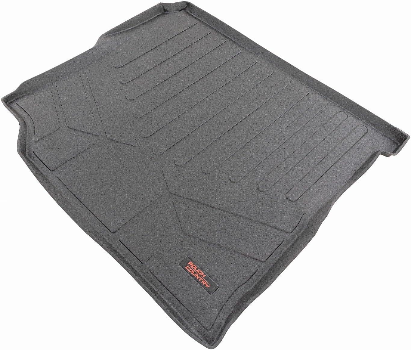 Rough Country Rear Cargo Mat for Jeep Wrangler JL Unlimited w/Subwoofer (2018-2024) - Non-Slip Waterproof Flexible Floor Mat, Front & Rear Set