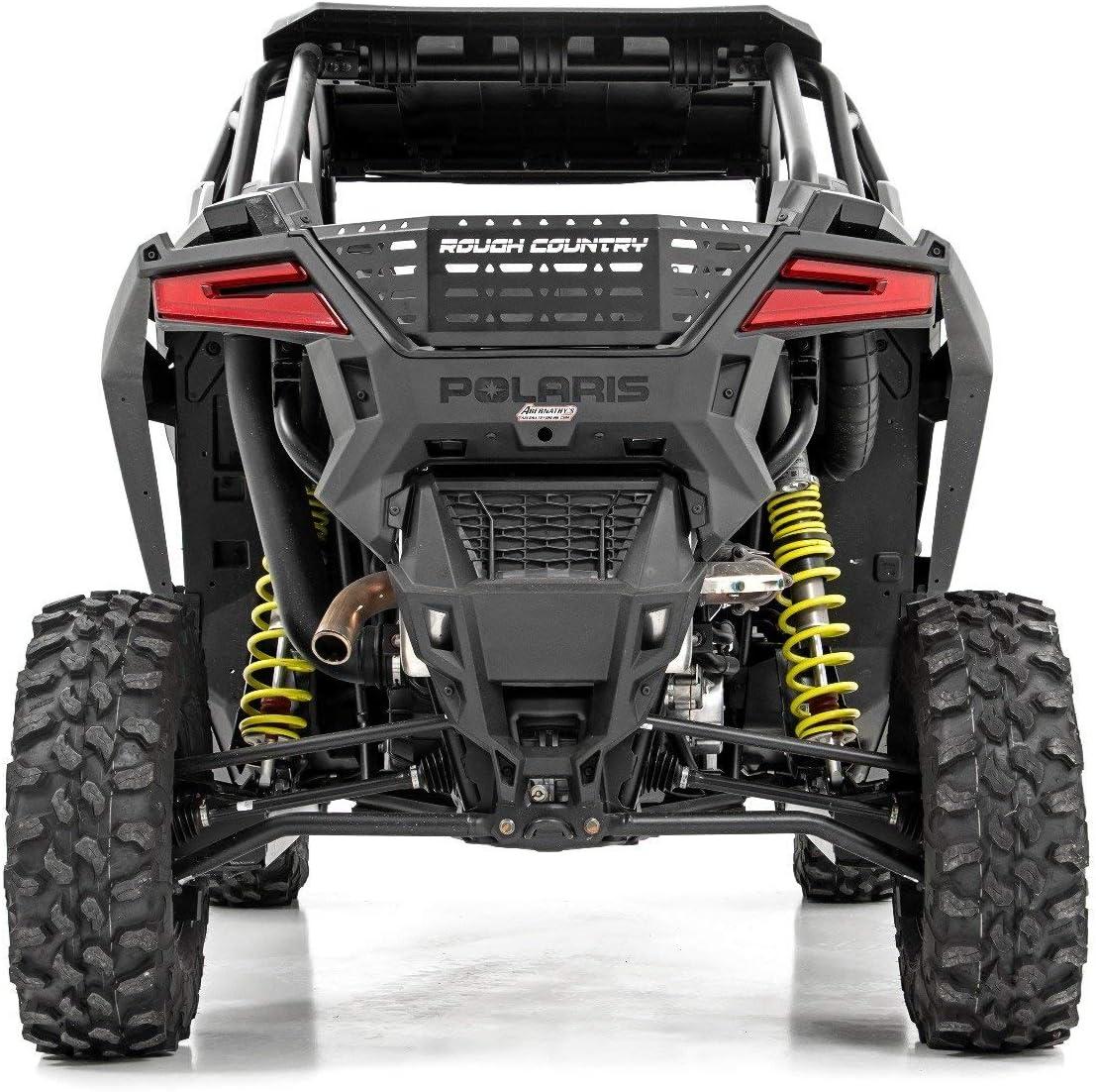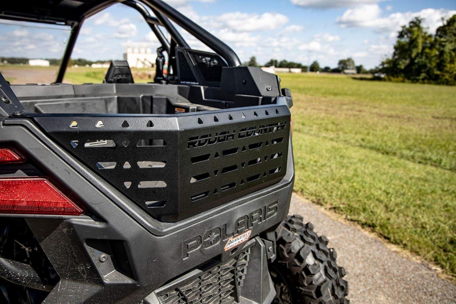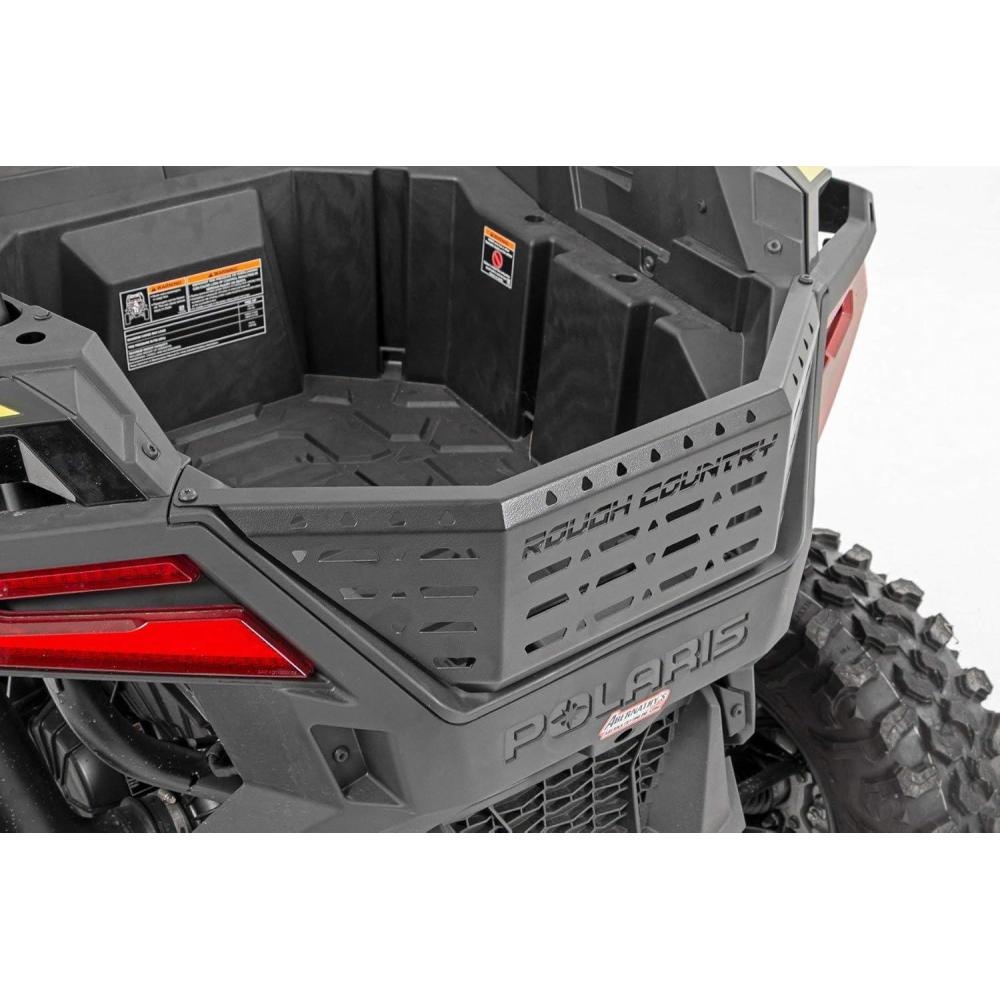 Give your Polaris RZR the secure carrying capacity it needs with Rough Country's Pro Rear Cargo Gate. This bolt on accessory quickly fixes the problem of the UTV's open tailgate. It is easy to install so you can pack the bed of your UTV securely and get back out on the trail. Rough Country's RZR Pro Rear cargo gate is crafted from steel and powder coated to withstand any adventures you may find yourself on.
