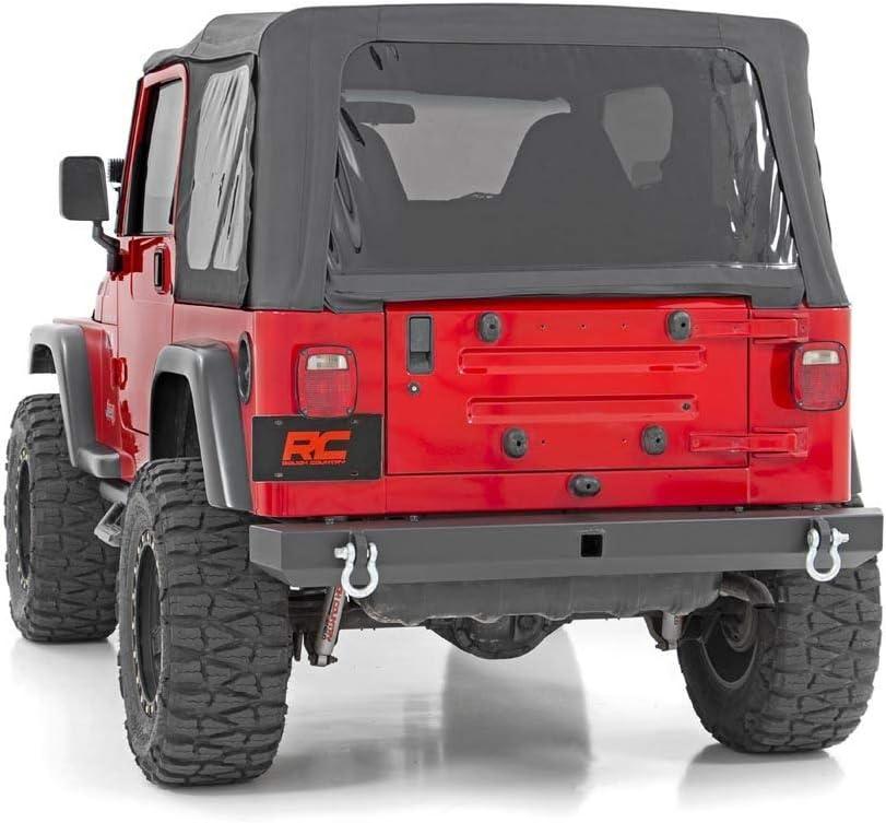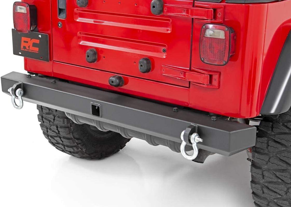 Rough Country's TJ/YJ Classic Rear Bumper is a minimalist design with modern appeal. With bold, but simple angles, this design truly complements the TJ / YJ body style for increased protection that blends in with the look of classic Jeeps. Rough Country's Full-Width Rear Bumper features a 5/32in steel composition for serious durability and comes coated in a corrosion-resistant, textured black powder coat to withstand the elements. Each bumper features a set of D-ring mounts welded inside and out for superior strength. Includes a set of D-rings with 4.75 ton capacity for easy winching or recovery in off-road environments. Want to keep your license plate in the stock position? You'll need to use our 10510.html TJ License Plate Adapter.