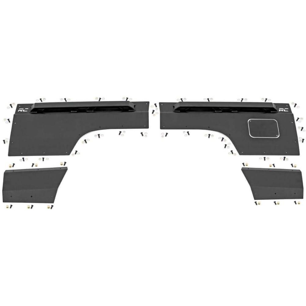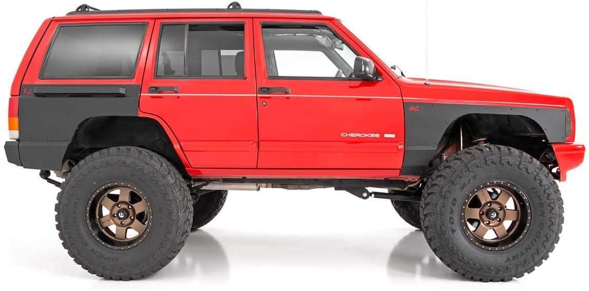 Rough Country’s durable armor plating is made of 11ga steel for uncompromised strength. The rear upper quarter panel features a unique box style rub rail that blends in seamlessly with the square-body XJ design. Each panel is laser cut for a precise fit, perfectly contoured to fit each curve and body angle. Rough Country’s Armor is engineered for a long lifespan of good looks; designed to resist the elements with a flat black powdercoat finish and special stainless black oxide hardware.