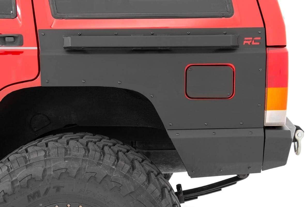 Fortify your XJ against the hazards of any terrain with Rough Country's XJ Armor. This durable armor plating system helps protect your Jeep's most vulnerable areas while giving your vehicle a more menacing and aggressive look. Rough Country's durable armor plating is made of 11 gauge steel for uncompromised strength. The rear upper quarter panel features a unique box style rub rail that blends in seamlessly with the square-body XJ design. Each panel is laser cut for a precise fit, perfectly contoured to fit each curve and body angle. Rough Country's Armor is engineered for a long lifespan of good looks; designed to resist the elements with a flat black powder coat finish and special stainless black oxide hardware. Rough Country's XJ Armor includes everything you need to upgrade your Jeep with superior off-road protection, and is proudly made in Tennessee! Includes a Limited Lifetime Replacement Guarantee!