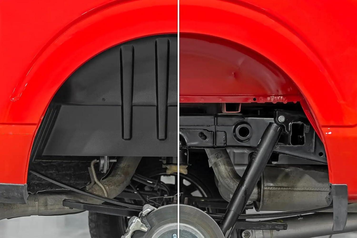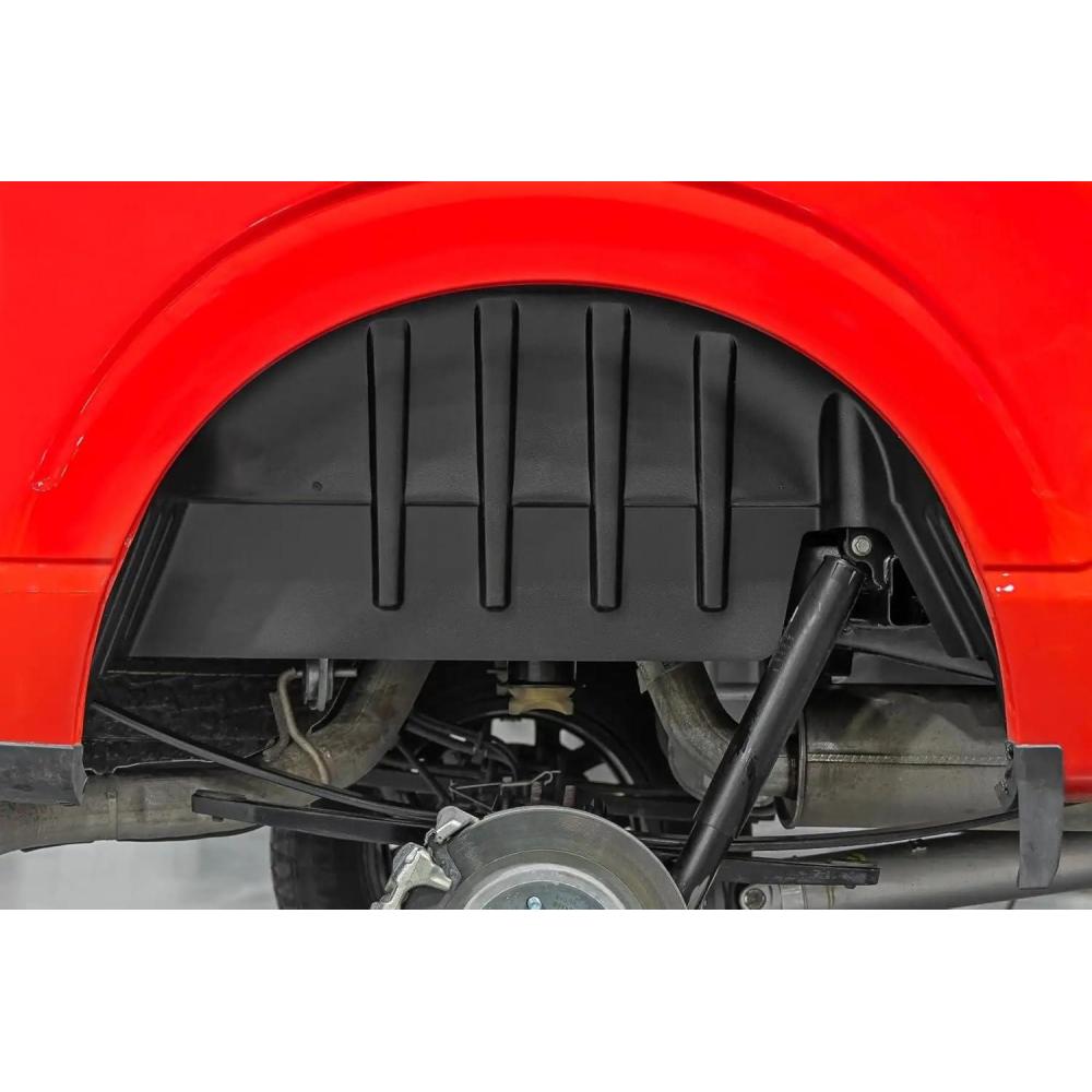 Rough Country Rear Wheel Well Liners offer an extra barrier of protection to help shield your wheel wells from rocks, mud, salt, and harsh weather. With all the small, hard to clean areas covered, cleanup is fast and simple. Installation is easy too! Rough Country Rear Wheel Well Liners feature a bolt-on installation process that's easy enough to do with common tools in a home garage.