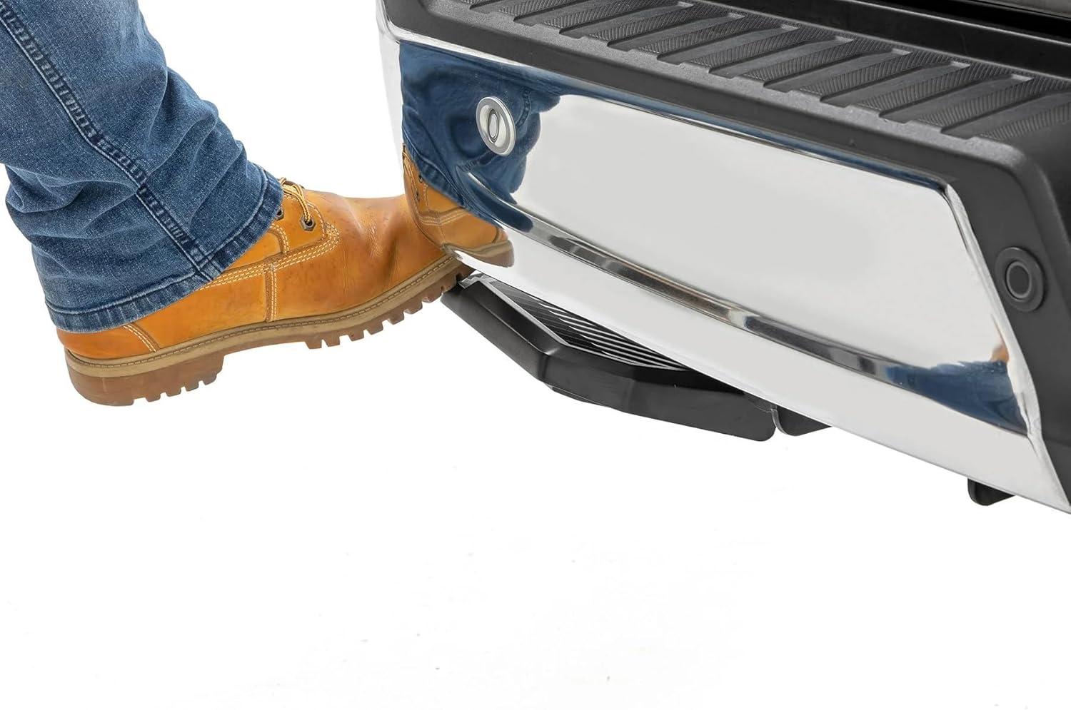 Tired of climbing up like you're scaling a wall just to reach your gear? The Rough Country Retractable Truck Bed Step is your answer for quick and easy access. With a simple tap of your foot, this step drops 5″, giving you that extra boost to reach what you need without breaking a sweat. Whether you're tossing in tools or loading up camping gear, the Rough Country Truck Bed Step has your back (and your knees).