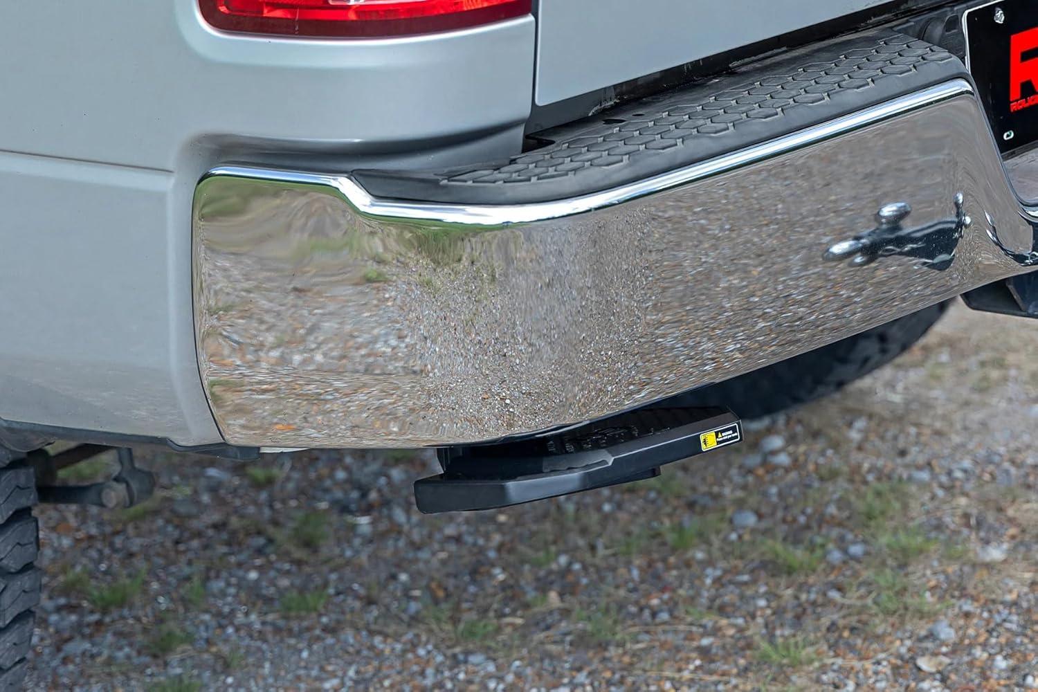 Tired of climbing up like you're scaling a wall just to reach your gear? The Rough Country Manual Bed Step is your answer for quick and easy access. With a simple tap of your foot, this step drops 5″, giving you that extra boost to reach what you need without breaking a sweat. Whether you're tossing in tools or loading up camping gear, the Rough Country Bed Step has your back (and your knees).