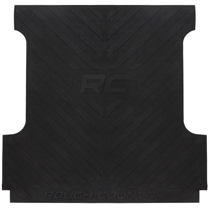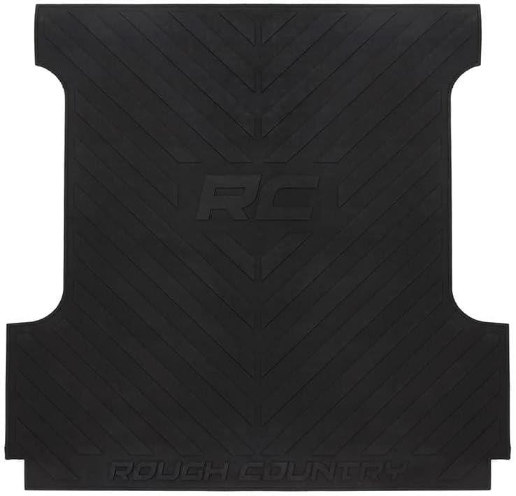 Innovative Design and Material. Keep your truck bed free from scuffs, scrapes, and scratches with Rough Country Truck Bed Mats. These heavy-duty, 3/8-inch thick, contoured rubber mats are nearly indestructible; made from a high-quality rubber compound that won’t crack in extreme temperatures or fade when exposed to the sun. This stylized bed mat features a large “RC” and “Rough Country” logo with angled lines for an improved look that also protects your truck bed.
