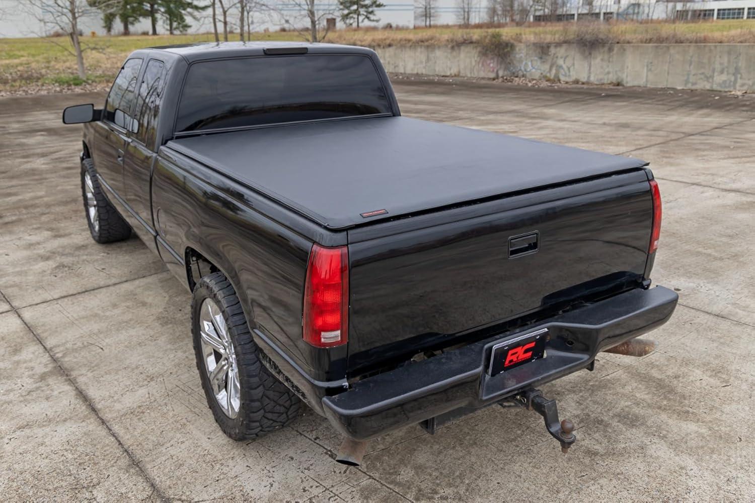 Rough Country Soft Roll Up Truck Bed Tonneau Cover for Chevy Silverado & GMC Sierra 1500 (1988-2007) - Fits 6'7 (79") Bed, Weatherproof Bed Cover