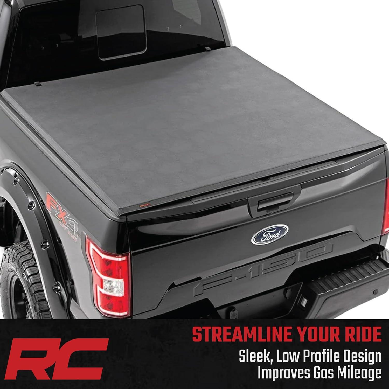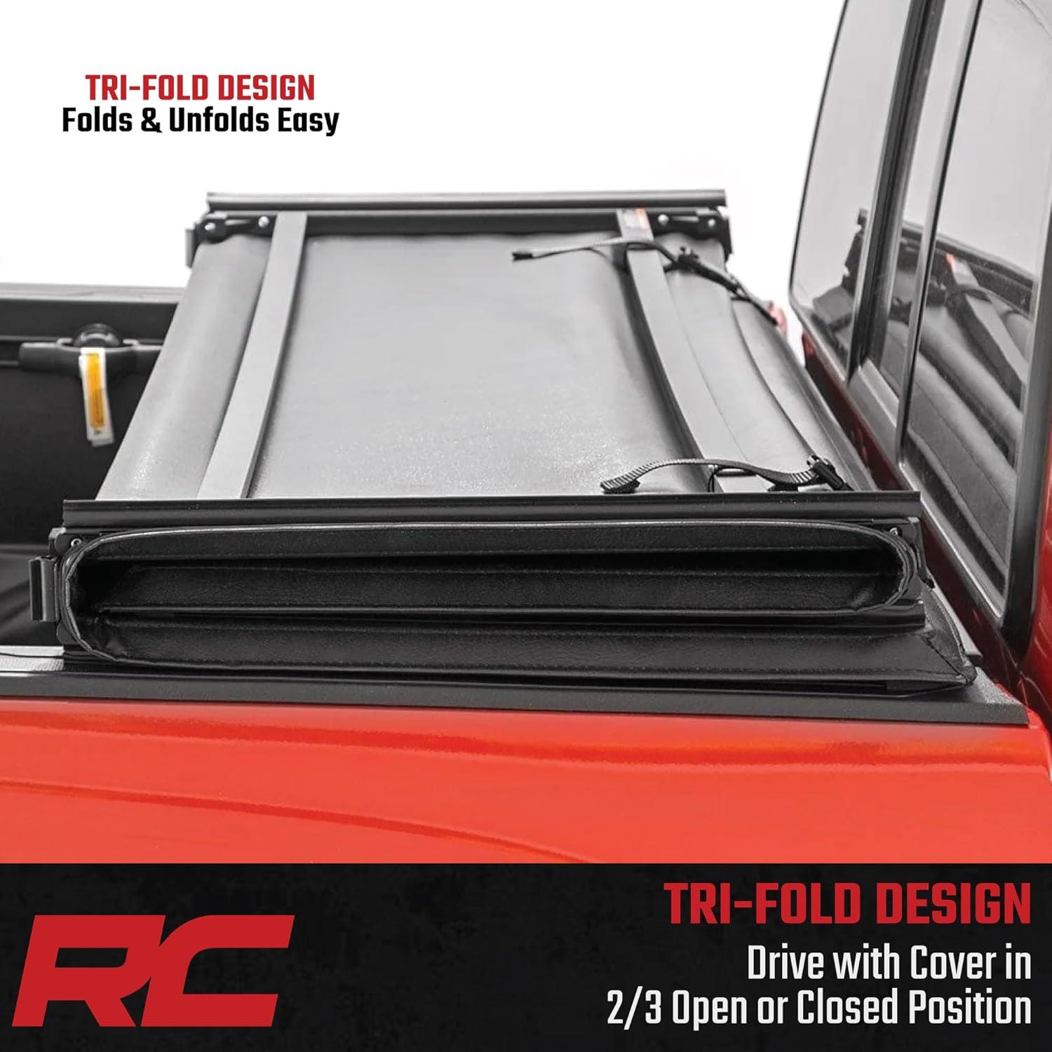 Rough Country Soft Tri-Fold Tonneau Cover for Ford F-150 (2015-2020) - Flush-Mount Vinyl Truck Bed Cover, Fits 6'7 Bed