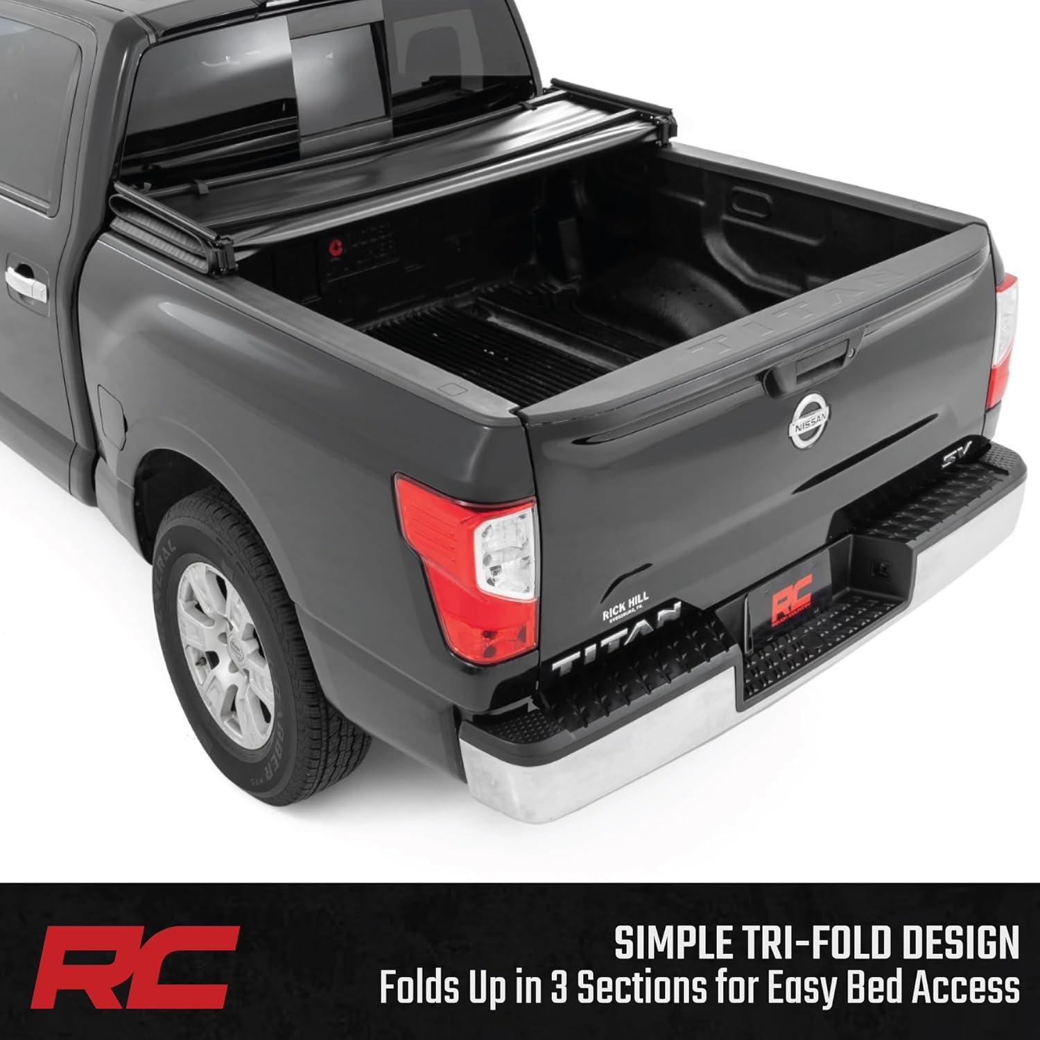 Protect your gear and streamline your ride with Rough Country's Tri-Fold Vinyl Tonneau Cover! Includes our 5-year warranty.