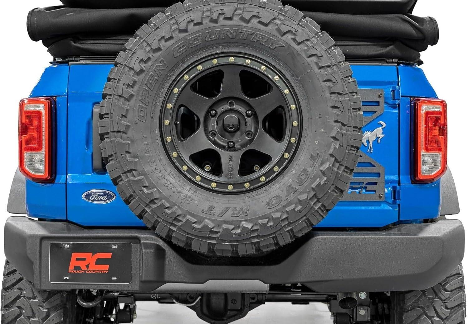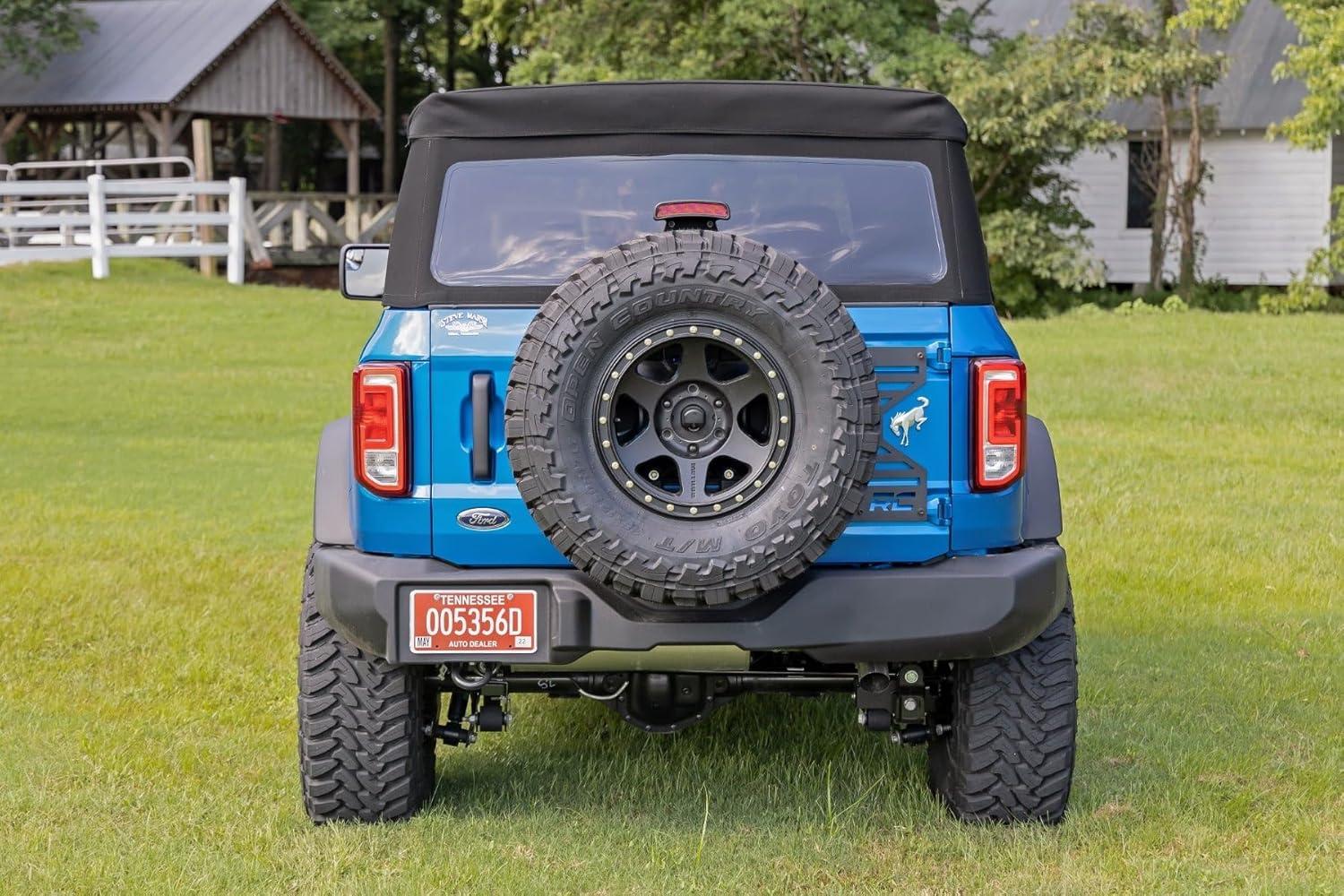 Larger wheels and tires can put extra stress on your BroncoΓÇÖs swing-out rear gate, especially when traveling over uneven terrain. Fortify this crucial area and run a larger spare wheel and tire with Rough CountryΓÇÖs Ford Bronco Tailgate Reinforcement Kit. This handy bolt-on kit is designed to handle aftermarket tires and wheels with ease. This easy, bolt-on reinforcement plate ties the hinge and spare tire mounting points together for increased strength and rigidity. The result is less strain on your tire carrier and hinges, prolonging the lifespan of your rear swing-out gate. Rough CountryΓÇÖs Bronco Tailgate Reinforcement Kit works with the factory spare tire carrier or Rough Country aftermarket spare tire carrier kits. Includes a Lifetime Replacement Guarantee!