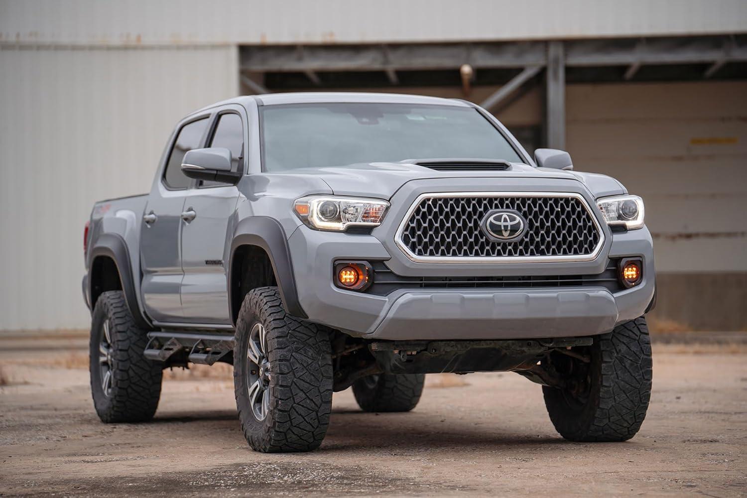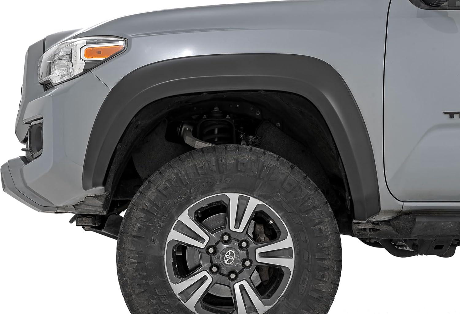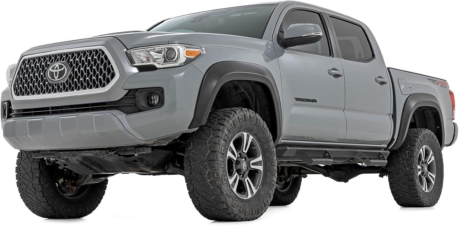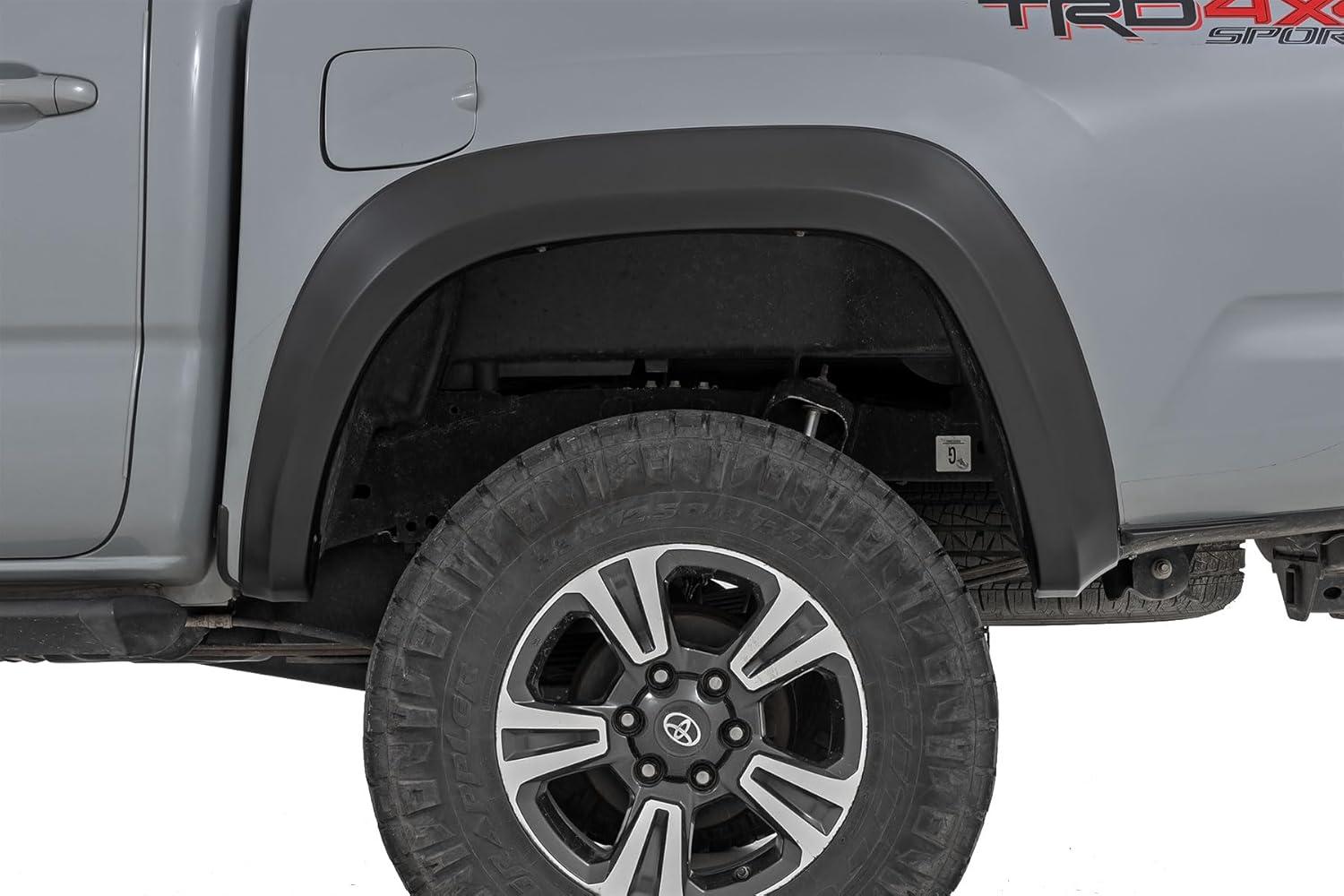 Rough Country Sport Style Fender Flares for Toyota Tacoma (2016-2023) - Durable ABS Flares, 1" Coverage, No-Drill Install, UV-Protected Flat Black Finish