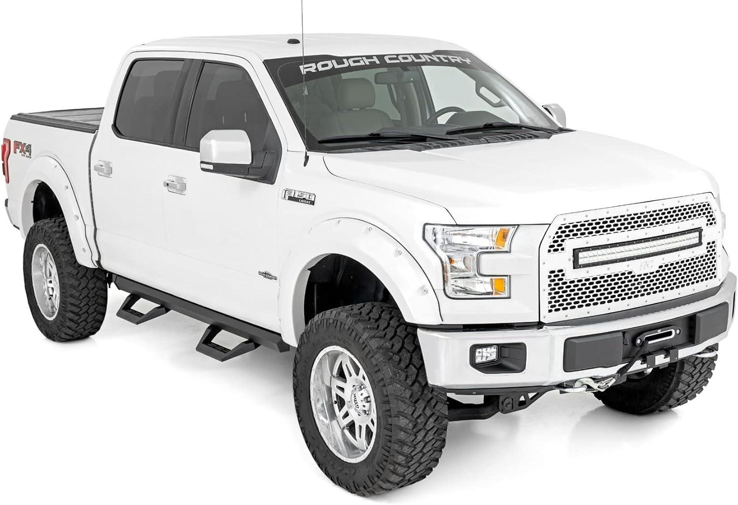 Rough Country SRX2 Adjustable Aluminum Steps for Ford F-150/Lightning/F-250/F-350/Raptor (2015-2025) Crew Cab – Modular Running Boards with Slide-Adjust Steps
