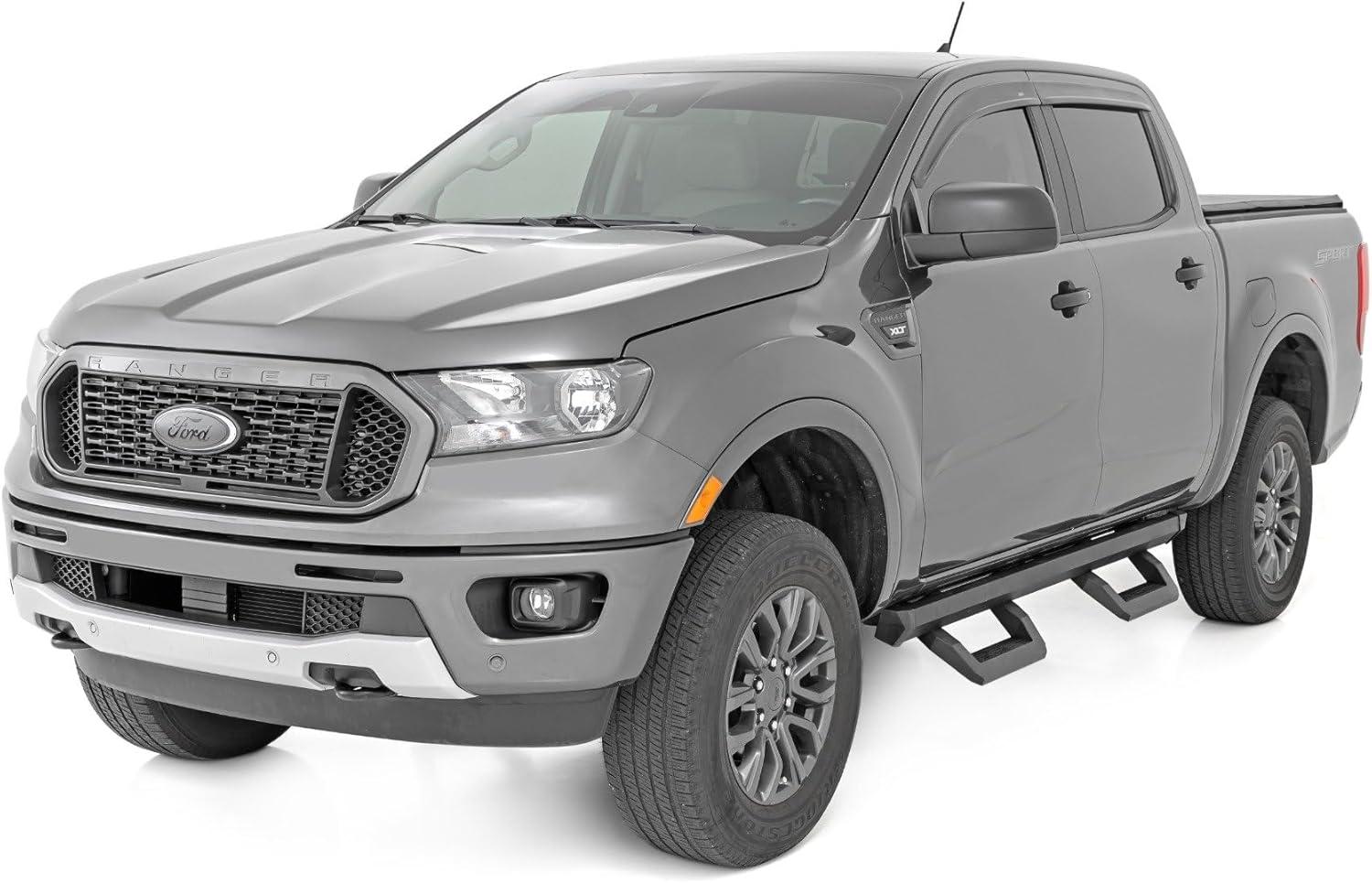 Upgrade your Ranger with Rough Country’s SRX2 Aluminum Side Steps, the perfect blend of innovative functionality and rugged style. Featuring a unique slotted rail system, these cast aluminum hoop steps are fully adjustable, allowing you to slide the footpad left or right for the perfect position to hop in and out of your lifted truck. Built from premium aluminum with a durable flat black powder-coated finish, these steps are designed to resist rust and wear, ensuring long-lasting performance both on and off the road. Not only do they enhance functionality, but they also improve your truck’s aesthetics by concealing unsightly body pinch welds and frame components.