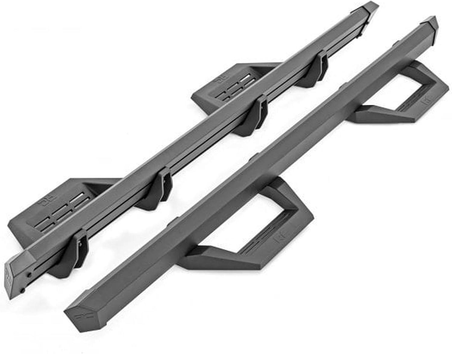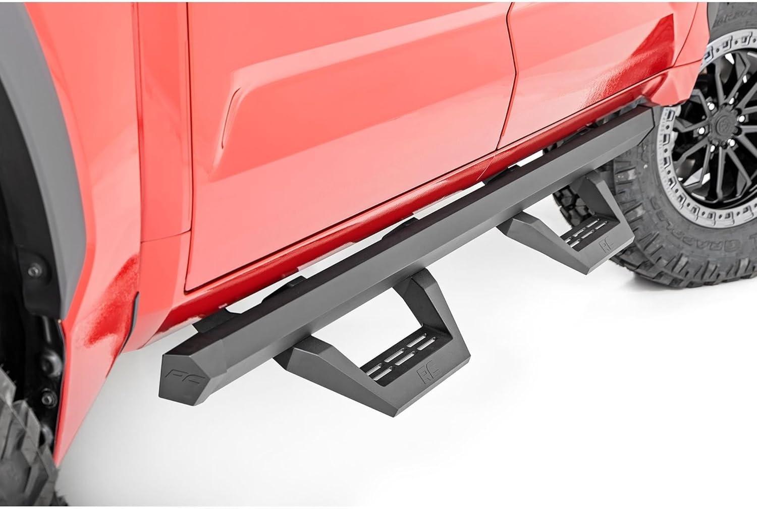The SRX2 steps are engineered for durability and strength, featuring precision-fabricated, powder-coated steel brackets and zinc-plated black stainless steel hardware for superior resistance to corrosion. Installation is effortless, with a straightforward bolt-on process that takes just 1-2 hours, so you can spend less time in the garage and more time on your next adventure. Backed by Rough Country’s limited lifetime warranty, these steps offer peace of mind, protecting against manufacturer defects and ensuring long-term confidence in your investment. Take your Tacoma to the next level with Rough Country’s SRX2 Aluminum Side Steps – where style meets functionality for every journey. Fits crewmax models only.