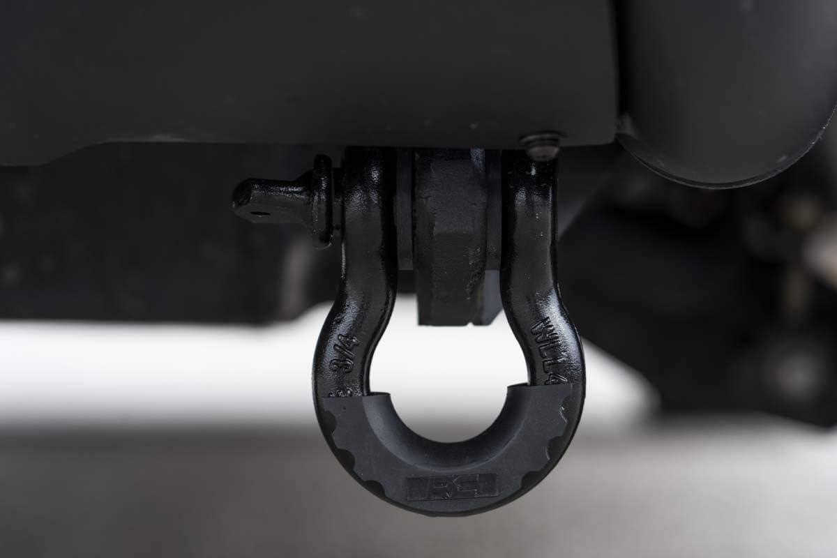 Give your vehicle an upgraded recovery option that offers a more aggressive look with Rough CountryΓÇÖs Tow Hook to Shackle Conversion Kit! This easy-to-install upgrade replaces your factory tow hooks with a durable d-ring shackle mount thatΓÇÖs easier to access and gives the front of your vehicle an eye-catching look. Rough CountryΓÇÖs Shackle Mount bolts directly to the frame providing the same strength and durability as your factory tow hooks to aid in recovery in any situation. Each mount is powder coated black for a long lifespan of good looks and is designed to work with both factory and many aftermarket bumpers. The mounting point was engineered to accept any 3/4in d-ring shackle, allowing you to customize the look of your vehicle. Featuring a 100% bolt-on installation process, this great-looking upgrade can be installed in a flash! Simply remove the factory tow hooks and install Rough CountryΓÇÖs Tow Hook to Shackle Conversion Kit into the factory tow hook mounting points and youΓÇÖre ready to roll! Best of all, each mount is covered by Rough CountryΓÇÖs Lifetime Replacement Guarantee! D-Rings/Shackles Sold Separately.