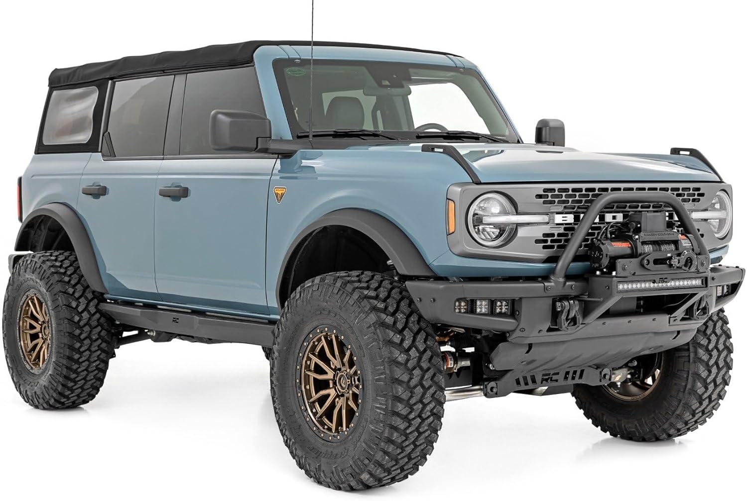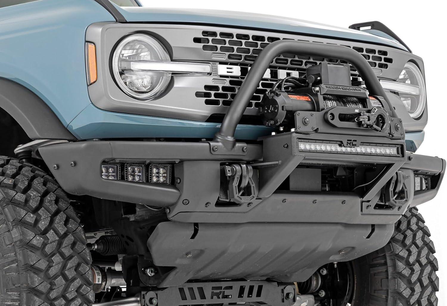 Light Up the Night. Looking to add some serious lighting power to your Bronco? Look no further than Rough Country's Bronco Triple Cube Fog Light Mount Kit! This handy kit lets you fit an impressive three sets of Rough Country's 2-in cube lights on your factory steel bumper, increasing your lighting power and visibility during nighttime adventures. Each light contains six 3-watt high-intensity Cree LEDs, providing a brighter, more focused beam of light that will help you navigate any terrain with confidence. Made to Last. The IP67 waterproof rating ensures that these lights can withstand the harshest conditions you can throw at them, from the mud to dirt or any off-road trail! The included LED lights produce an incredible 14,000 lumens, making it easy to see in even the darkest conditions. Additionally, the Moisture Breather technology reduces moisture build-up behind the lens, making sure your lights always perform at their best. So, whether you're driving through thick fog or inching your way down a dark trail, you can rest assured that you'll have the visibility you need. Installation. This 100% bolt-on kit discreetly mounts into your OEM bumper, right in the factory fog light location. The brackets are hidden from view for a clean and flush factory-looking install. But don't let the sleek design fool you – this thing is built tough! Our kit also includes premium, flat-wound wiring harness with an on/off switch. No cutting or drilling is required, so you can get this installed and hit the trail in no time flat. Limited Lifetime Replacement Warranty. Rough Country's products are backed with a limited lifetime replacement warranty towards manufacturer defects. As such, the product is protected from structural and workmanship damage after the date of purchase. With our industry-leading warranty, give yourself peace of mind when using Rough Country's products!