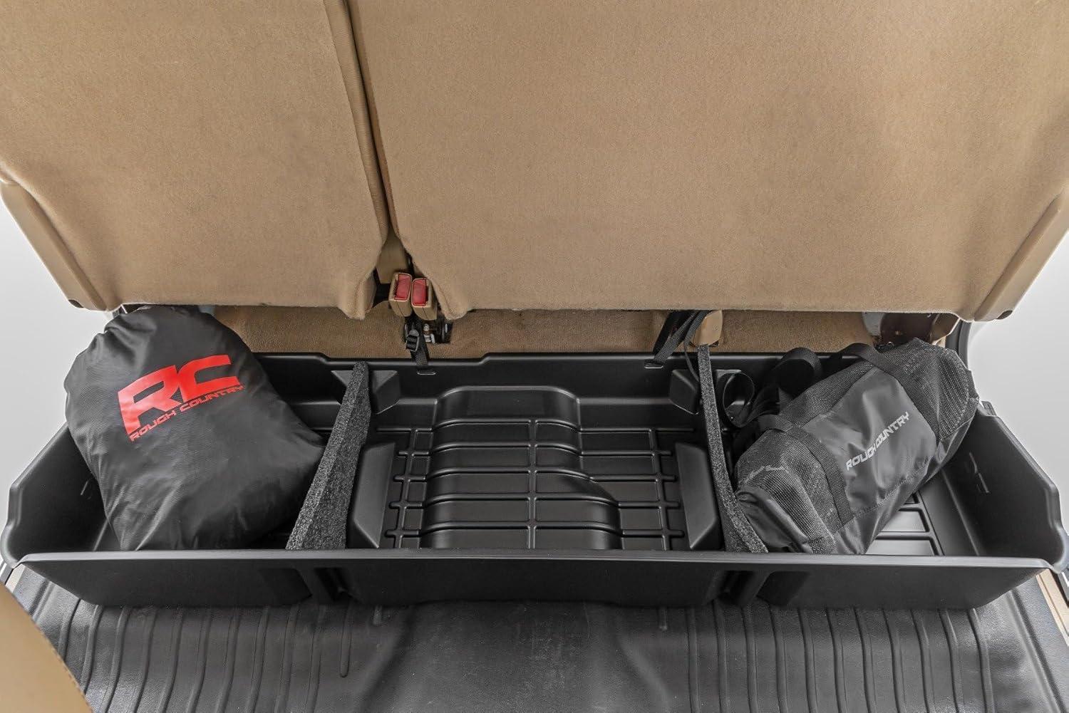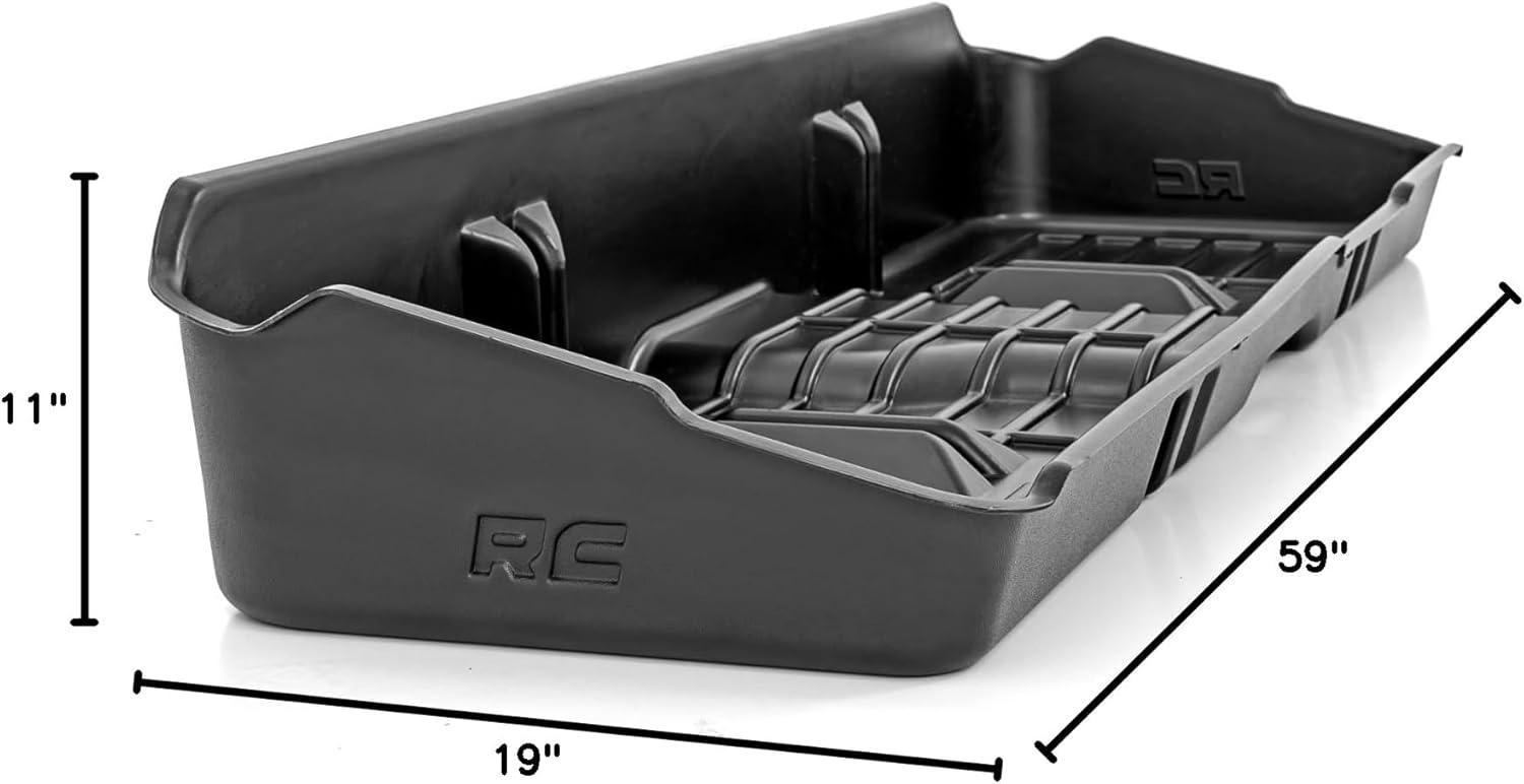 DURABLE CONSTRUCTION: Made from high-density thermoplastic, Rough Country's underseat storage solution offers exceptional durability and resilience. Its tough construction ensures it can withstand daily wear and tear, protecting your gear and tools while maintaining its shape and integrity over time. Ideal for rugged use, it provides long-lasting performance and reliability.